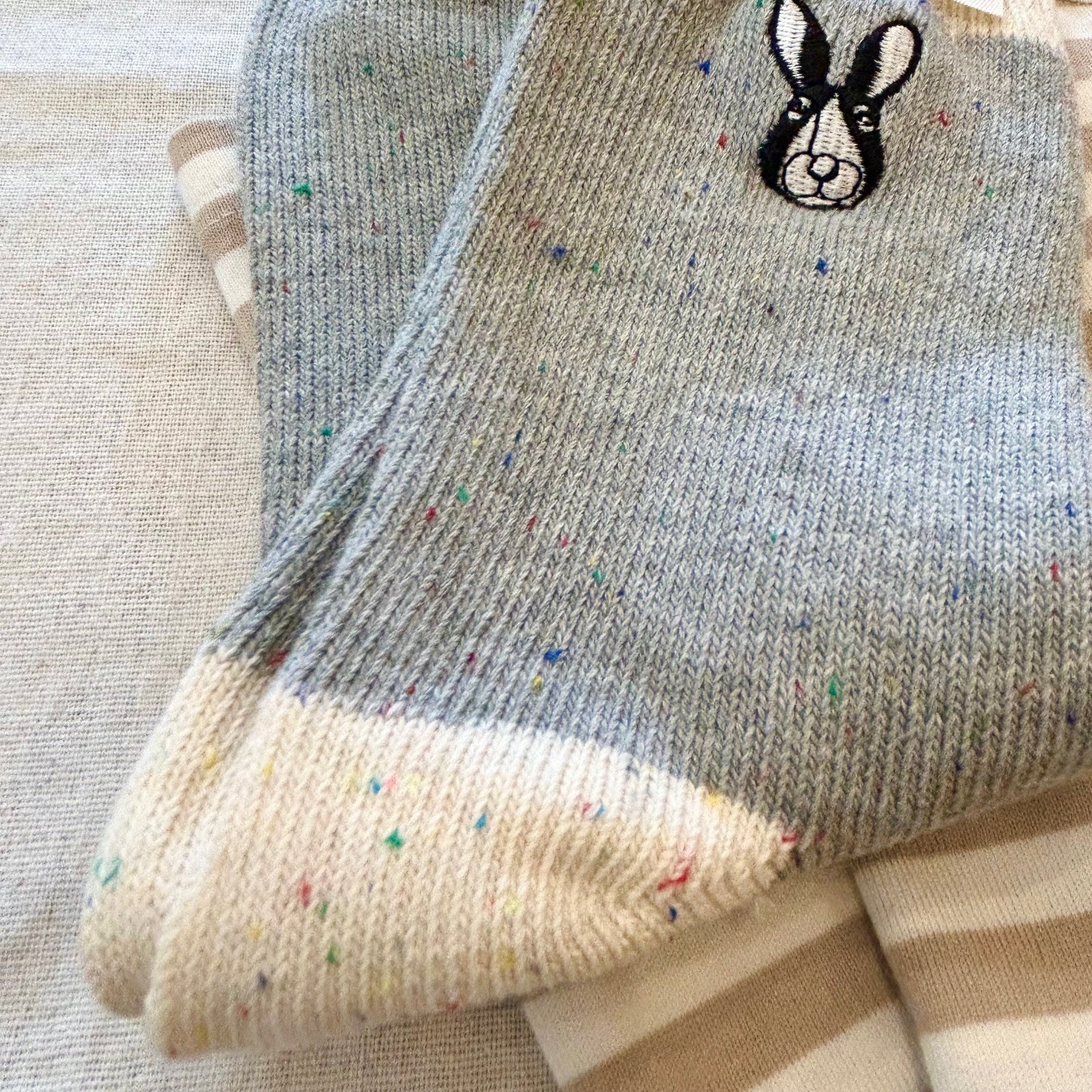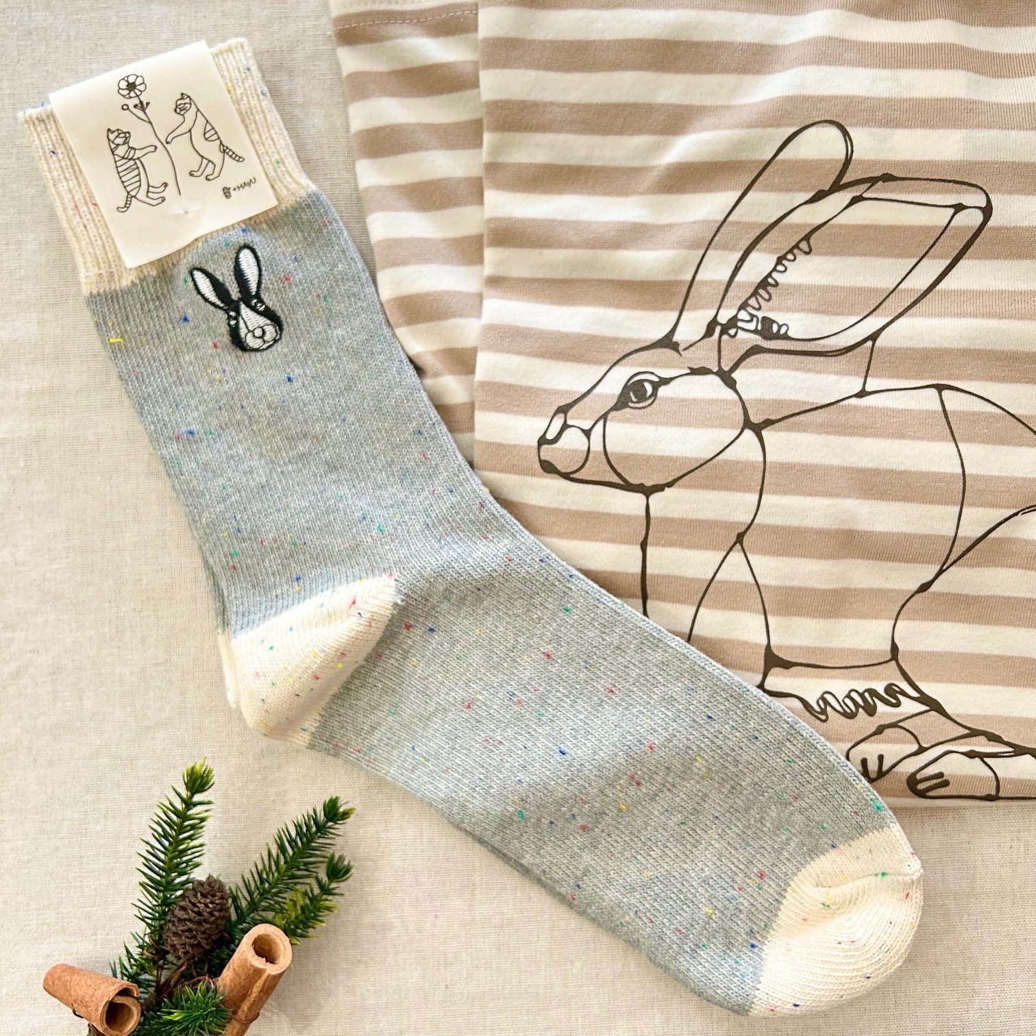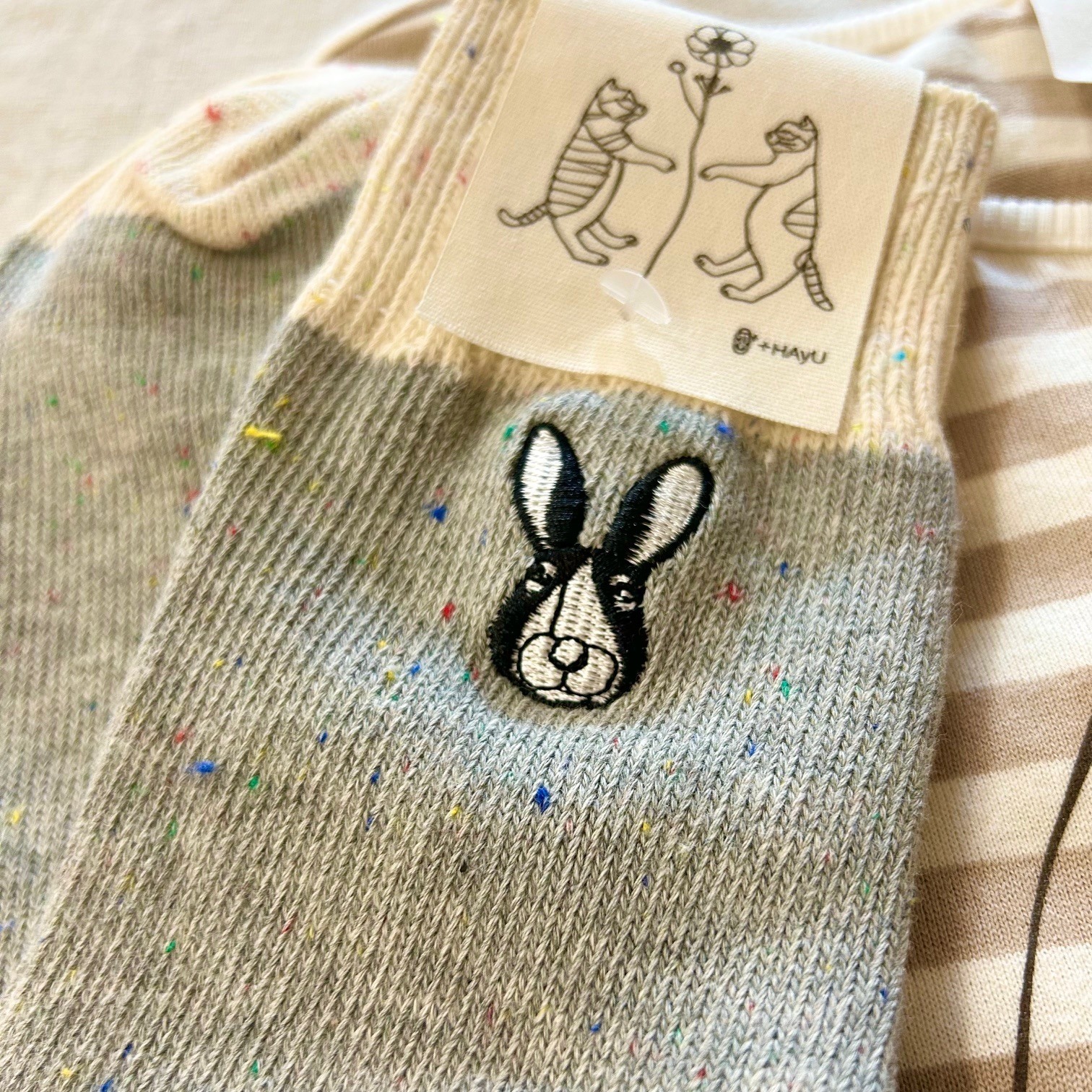 合わせて届いたニット生地ソックスは、うさぎのワンポイント刺繍が愛らしいデザイン。
