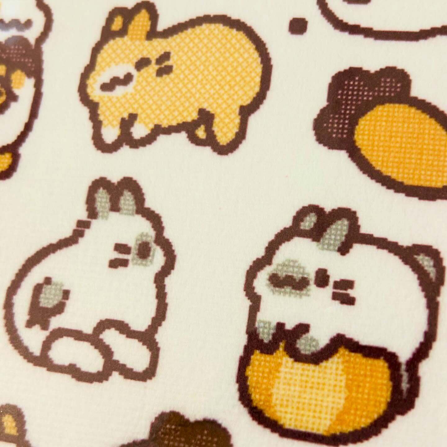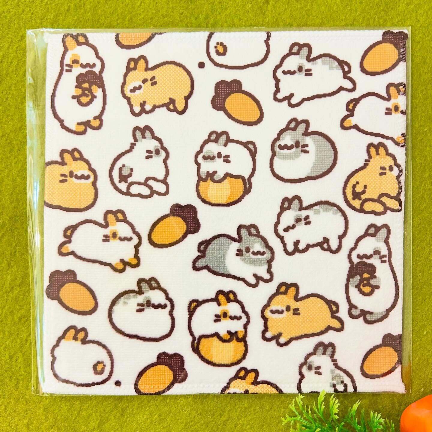 ハンカチタオルは、たくさんのうさぎさんが散りばめられた癒やし度満点のデザイン🐰🐰🐰