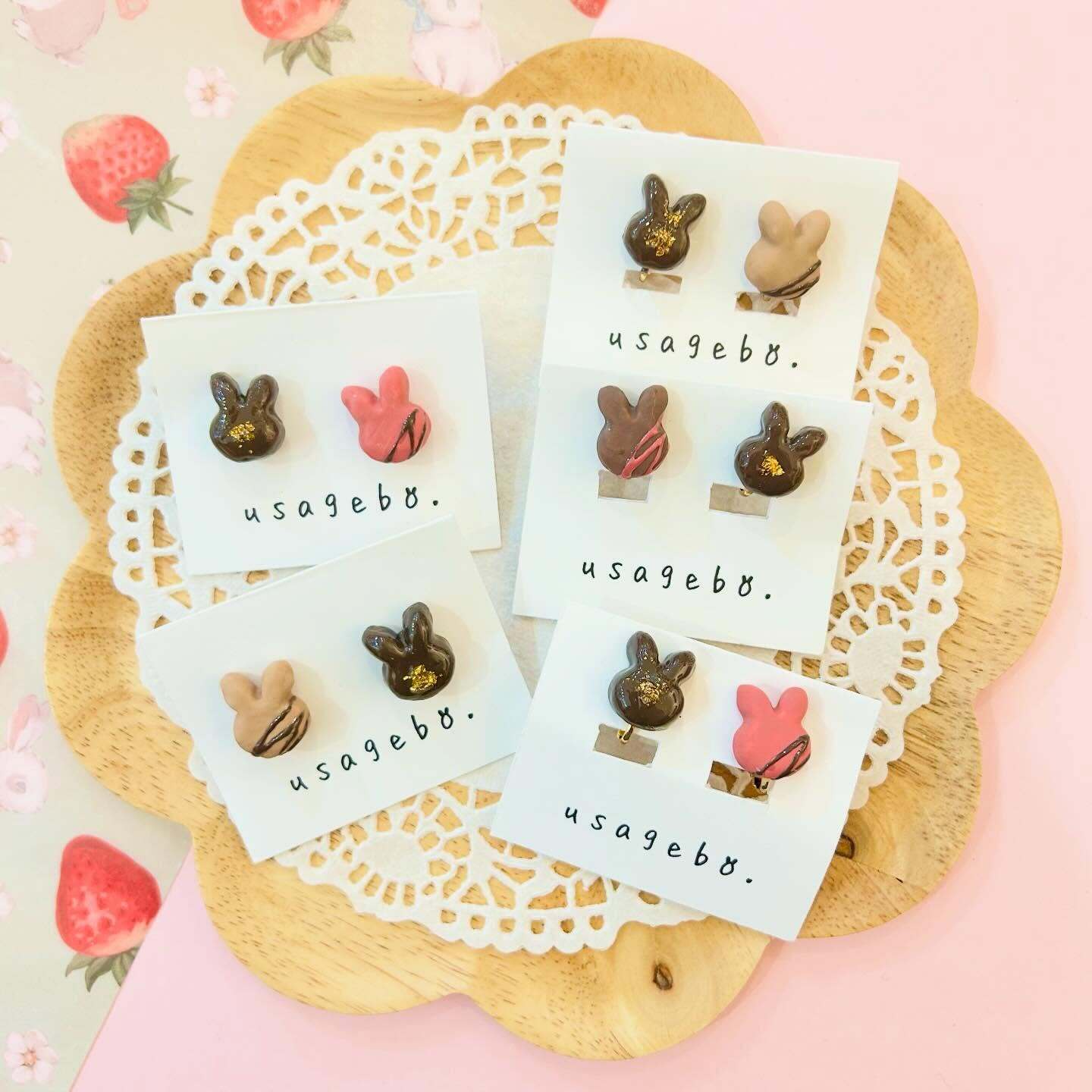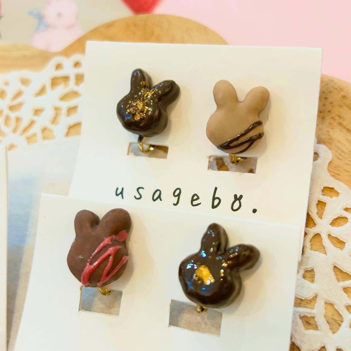 usagebo. さんのバレンタイン感たっぷりな可愛さ… うさぎさんチョコのピアス&イヤリングが入荷しました