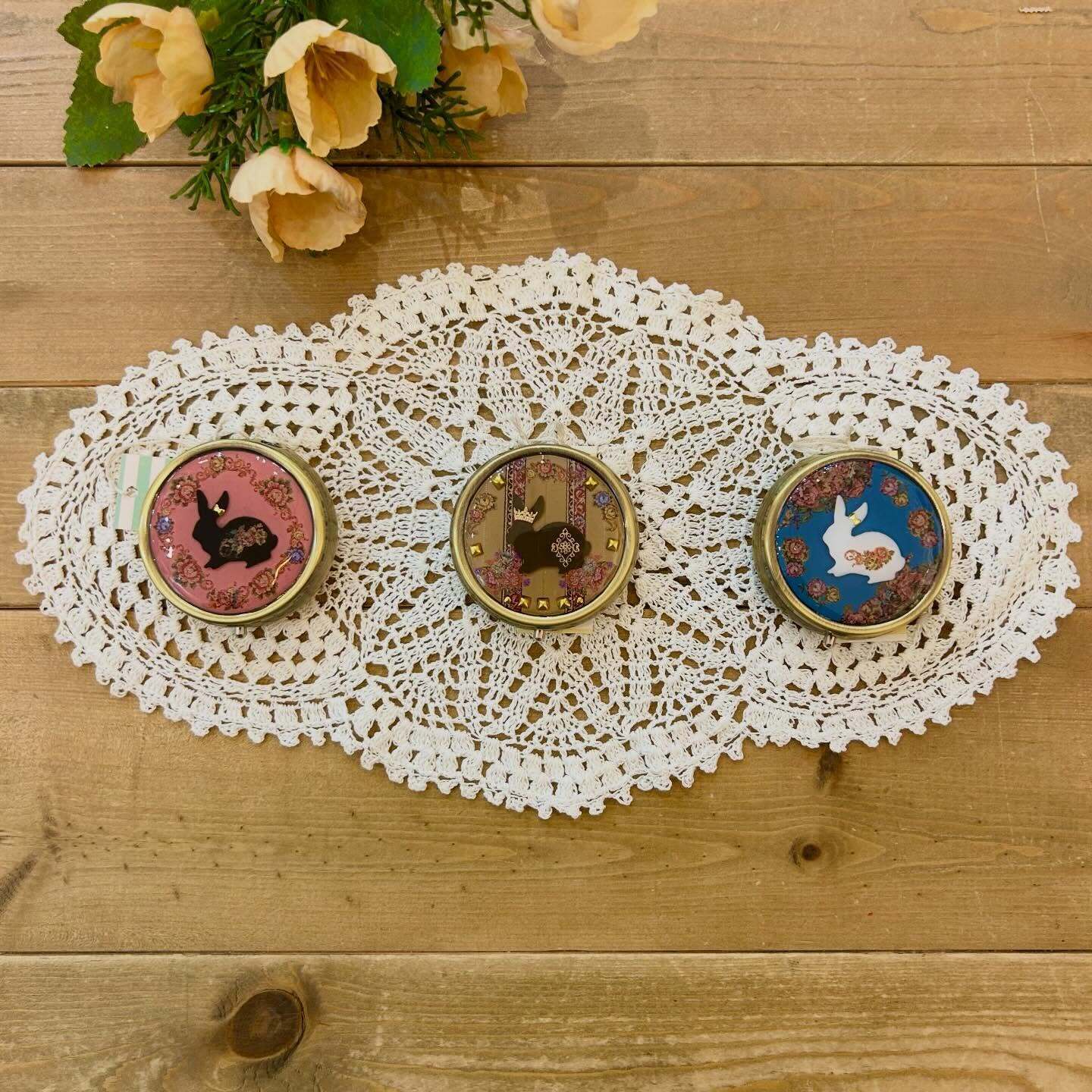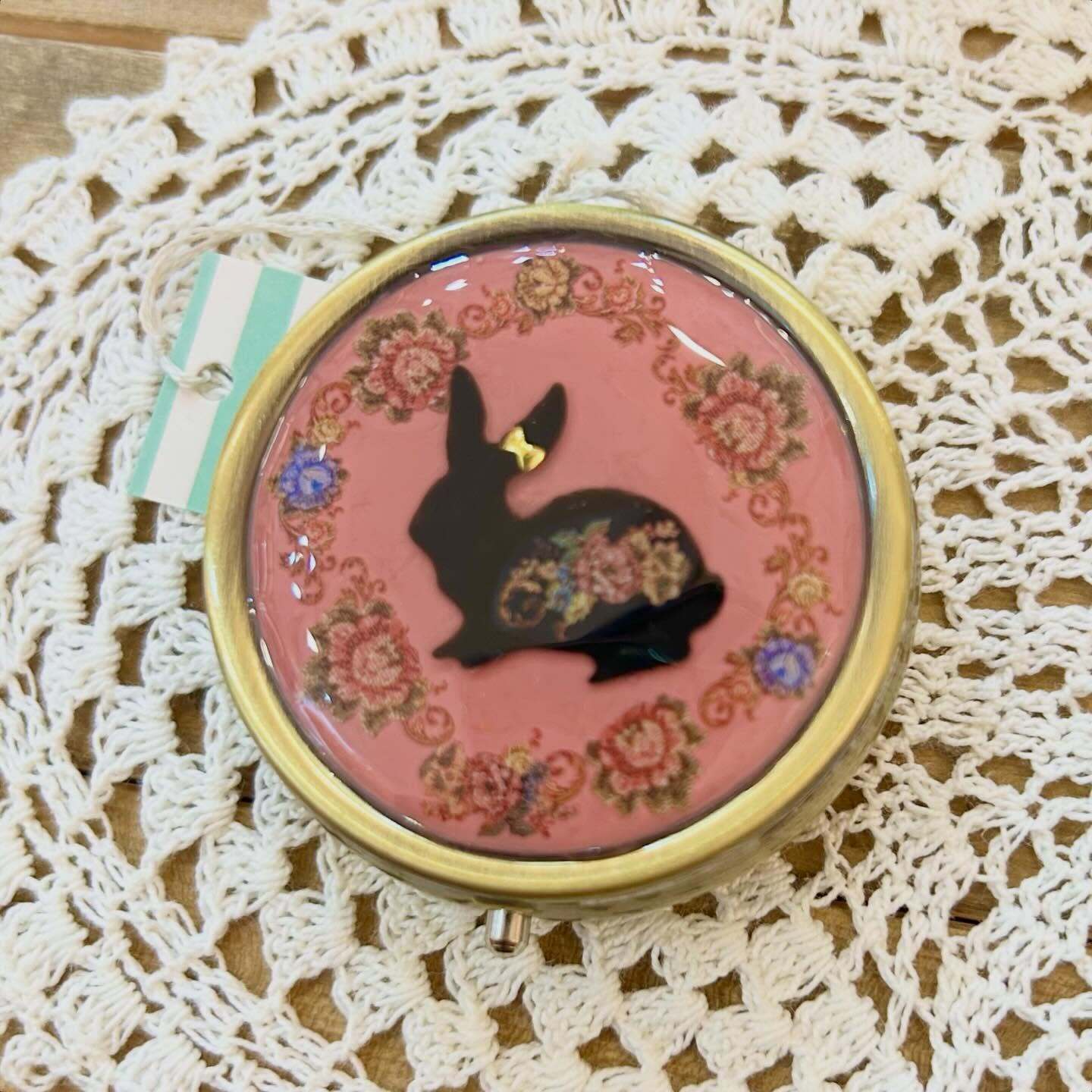 まず目を惹くのは、優美なゴブラン柄のコンパクトケース。片手でさっと開けられる使いやすい仕様で、中央には愛らしいうさぎがそっと佇みます。上品で可憐なデザインは大人の女性にもぴったり。お薬を入れるピルケースとしてはもちろん、お気に入りのアクセサリーを大切にしまうケースとしてもお使いいただけます。日常にアンティークな彩りを添えてくれるアイテムです。