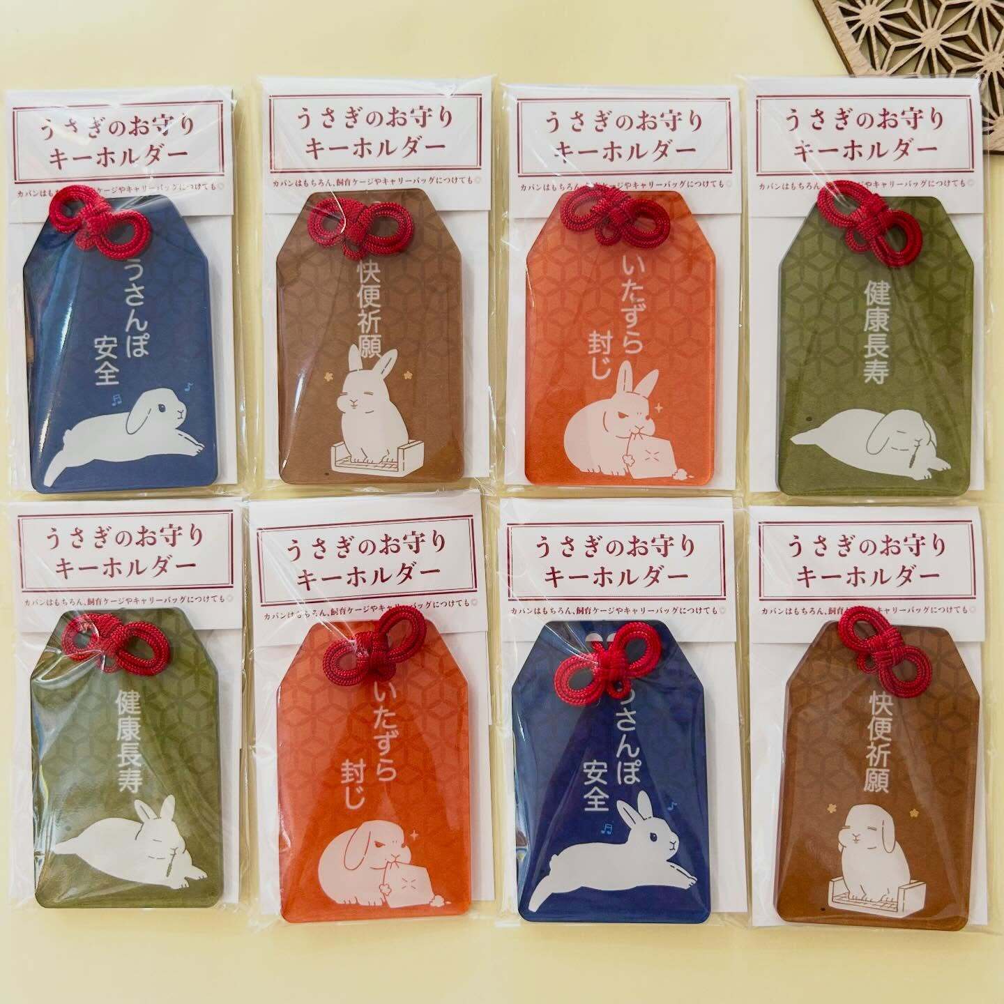 「ウサギノシモベ」さんの新作お守りキーホルダーが尊いです… 定番の『健康長寿』に加えて、『うさんぽ安全』、『快便祈願』、『いたずら封じ』が新登場! 【立ち耳・垂れ耳】対応なのが最高です 通院バッグやキャリーに付けて♪
