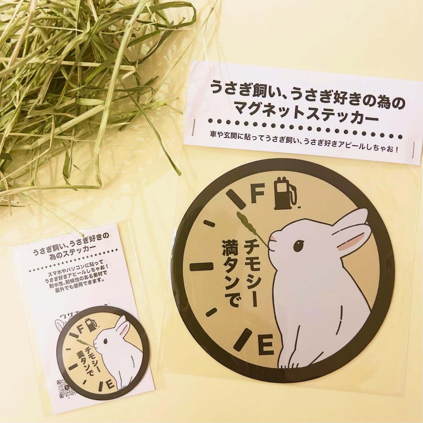 うさぎさんの「チモシー食べたい」ランプは常に点灯中? 「チモシー満タンで!」の気持ちを形にした、マグネットステッカー&ステッカーが届きました 燃料(チモシー)不足にならないよう、このステッカーを貼っていつも満タンです♪
