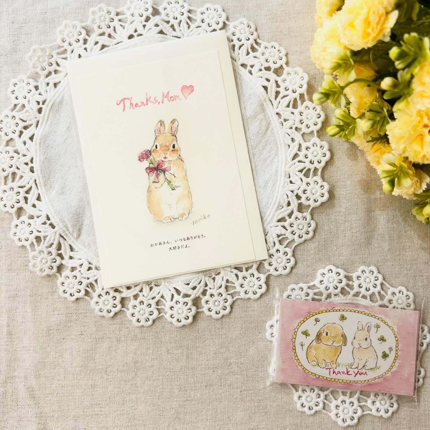 寄り添う2匹のサンキューカードもとっても可愛い🐰🐰「ありがとう」の気持ちを、うさぎさんに託して